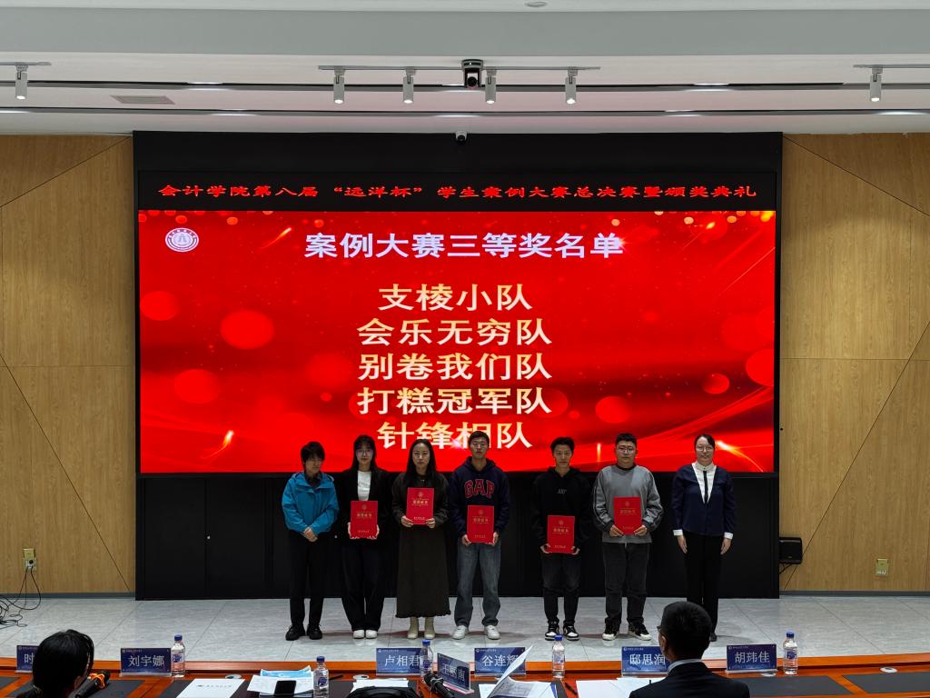本次案例大赛共有16支队伍报名并提交了案例报告,经专家评审后评选出10支队伍进入决赛进行汇报。总决赛由会计学院刘宇娜、时军和胡玮佳3位教师担任评委。经激烈角逐,最终评选出一等奖2名、二等奖3名、三等奖5名。